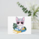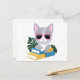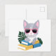 Cute Bookish Cat with Pink Glasses – Kawaii Smart Postcard