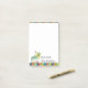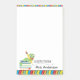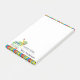 This 4x6 Post-it® Note pad features a graphic of a green bookworm sitting on top of a stack of books. The Post-it® note is accented with primary colored stripes on the top and bottom. The bottom of the pad reads "A NOTE FROM" with customizable text for the teacher's name. This makes a great teacher gift.
