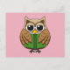 Cute Bookworm Owl Reading Book Cartoon Holiday Postcard