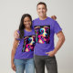 My 11 yo wore adult XL (5’7” 165#). The 8yo is small framed. She wore adult small and tied it in the back. Grandma wore adult large with long sleeve shirt underneath. Tall girl adult medium. Dark haired male adult large. Good quality dark Heather gray, Gildan brand shirt. -it was next up from basic choice and cost about $20 per shirt. Not too thick or thin. Washed and dried well, no major shrinkage. Not see-through. Can wear a bra under it fine. Screen print is just as shown and well done, front and back.