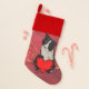 I purchased this for my new kitty for Christmas. She is a tuxedo cat and the stocking shows a tuxedo cat. Just purr-fect. I only wish the name could have been placed on the top red band. This would’ve matched all my other stockings. However, it is really adorable! Again, I really wish the name could’ve been put on the red band on the top of the stocking. It would’ve matched all my other stockings. Her name did come out nice.