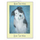 This customizable note card has a picture of a border collie named “Badger”on the front. Badger was a very special border collie dog, he was a rescue dog and he lived to be 16 years old. This faithful and loyal boy spent almost every moment with his “mom.” He was a working dog and she a gardener, they made the perfect pair, but sadly he passed away a few years ago. I painted this portrait of Badger before he passed on, he always carried his little blue teddy around with him so the teddy was very fitting to his portrait. The text on the front and inside this card can be personalized to suite all sendings.