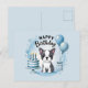 Make their special day paw-fect with this adorable Boston Terrier birthday postcard! Featuring a sweet grey-and-white Boston Terrier puppy, a striped blue birthday cake, cheerful balloons, and a gift box, this design blends charm and celebration in one keepsake card.