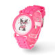 This adorable kids' watch features a playful Boston Terrier illustration on a vibrant pink background. Perfect for young dog lovers, this fun and stylish timepiece makes a great gift for birthdays, holidays, or any special occasion!