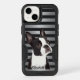 This phone case is for the person who can't get enough of Boston Terriers. The design features a cute Boston Terrier dog on a modern striped background.