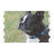 Sweet faced black and white Boston terrier dog, with a smug mug.