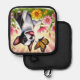 Cute Boston Terrier Puppy Playing With Butterfly Pot Holder