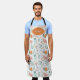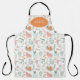 Pretty spring floral pink, orange, and sage green patterned feminine apron with personalized name / text over an orange oval geometrical shape.