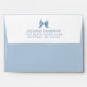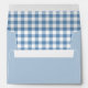 Celebrate the upcoming arrival of a little one with our delightful pastel blue and white return address envelope made to match our custom baby shower invitation. This timeless design features a sweet blue bow with return address on the upper back flap on a white background. When the envelope is opened it reveals a trendy blue and white gingham check pattern. The remaining exterior portion of the envelope is finished in light blue and coordinates with the interior gingham check and exterior blue bow. The return address information event details are elegantly presented in stylish blue lettering.