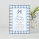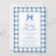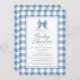 Cute Bow Pastel Blue & White Gingham Check Pattern Invitation