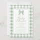 Cute Bow Pastel Green White Gingham Check Pattern Invitation