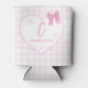 Cute Bow Pastel Pink Gingham Personalize Can Cooler