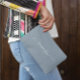 Cute Bow Signature Name Dusty Blue Accessory Pouch