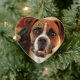 Beautiful ornament that is very true to picture. It is a nice weight for hanging on the tree. I bought this for my sister who has a boxer marked nearly identical to this one on the ornament.. It is true to color and detail. Very beautiful.