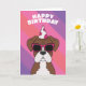 Wish them a Happy Birthday with this cute pop art style Boxer Dog greeting card. Whether they are a dog lover or owner, your friend or loved one is sure to smile when they receive this birthday card from the dog. The happy birthday text on the front of the folded card can easily be edited to say any message you would like, and we even have 5 different colored backgrounds for you to choose from, red, green, pink, blue or orange. If you prefer why not get creative and delete our backgrounds altogether and make your own?