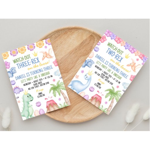 We offer thousands of invitation designs to make planning a memorable event a piece of cake. With a vast variety of designs that include Dinosaur Birthday Invitations and Dinosaur 1st Birthday Invitations. With the number of options we have we are confident you'll find one that suits your needs. Fully customizable and vibrant, these invitations will set the perfect tone for a joy-filled celebration.