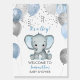 Welcome your guests with this adorable baby shower foam board featuring blue and gray baby boy elephant with balloons and confetti. Easily customized for your event by clicking "personalize".