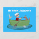 Cute boy sailor and dog rowing boat cartoon postcard
