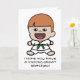 Cute card celebrates a birthday in a kicking fun way. It features a cute cartoon boy wearing a green karate belt. You can customize the text on the front and inside.