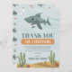 This cute and modern baby shower thank you card design features an under the sea illustration, with a matching blue shark pattern on the back. The thank you card can be personalized with the parent's (or child's) names. The perfect addition to your co-ed couples boys baby shower.