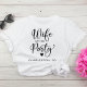Cute t-shirt for the bride at her bachelorette party featuring "Wife of the Party" in a chic script with a heart and "Charleston, SC" in simple modern typography. You can change the party destination. A coordinating "The Party" t-shirt is available for the bachelorette group in your choice of colors.