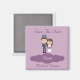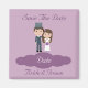 Sweet Bride & Groom illustration on a lilac background on a “Save the date” magnet. Edit the text to add the names of the bride and groom and the wedding date. All text is customizable – lots of different fonts and colours to choose from. A fun way to remind your guests of your wedding date. Please visit my Molly Sky store for more fun and cute wedding stuff and lots of products for everyone – even the family dog!