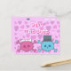 Customizable Save the Date postcards with cute pink and blue bride & groom cartoon skulls and hearts illustration. The text can be changed by clicking on the “Customize it” button – then click on "F" to change the font. There are loads of fonts and colors to choose from. If you need any assistance in customizing your product please contact me through my store and I will be more than happy to help.