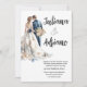 Cute bride groom watercolor wedding card modern