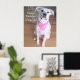 What a cutie! Olive looks striking in her stylish pink scarf. Her eyes are alert and bright and she's just waiting to make someone's day special. This is a great poster for birthdays, thinking of you, get wells, and every occasion you'd like to bring a little joy into someone's life. Animal lovers, especially dog lovers will appreciate the sweet expression on Olive's face. Treat yourself or someone you know to this cheerful and beautiful poster.