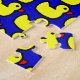 Cute Bright Yellow Rubber Ducky Pattern on Blue Jigsaw Puzzle