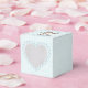 Cute baby bear design for your guests who will fall in love with him. Cute brown and blue bear on baby blue blanket with stitched hem border and animal footprint hearts around a window heart shape. Perfect for a baby shower for boys!