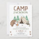 Cute Brown Bear Camp Themed 1st Birthday Invitation