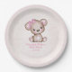 Cute Brown Bear Girl Plaid Pink Paper Plate