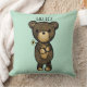 Cute Brown Bear with Yellow Flower Hello Throw Pillow