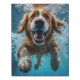 Cute Brown Dog Underwater Swimming Blue Water Faux Canvas Print