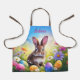 Make Easter baking extra fun with this adorable kids' apron, featuring a watercolor painting of a cute brown baby bunny in a field of vibrant spring flowers and colorful Easter eggs. Personalize it with your child's name, and customize the font style and color for a unique touch. You can also adjust the strap color to match their style. Made from durable and comfortable fabric, this apron is perfect for little chefs to enjoy holiday baking and crafting.