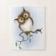 Cute Brown Owl Blue Wildlife Whimsical Jigsaw Puzzle