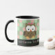 Adorable girly brown owl with eyelashes and a pink bow on top of her head. This cute design is great for teachers, students, girls, or anyone who loves nature and wild birds. A cute pink and green polka dot background adds the finishing touch, along with your custom text personalized online. All Designs Copyright © 2012 www.CuteComfy.com