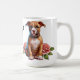 an illustration of an adorable little brown pitbull puppy, the epitome of cuteness, surrounded by a stunning bouquet of roses!