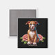 an illustration of an adorable little brown pitbull puppy, the epitome of cuteness, surrounded by a stunning bouquet of roses!
