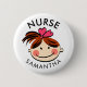 Cute Brunette Cartoon Nurse Name Button