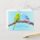 This postcard features a digital painting of a cute budgie couple on a branch. Beautiful postcard for all bird lovers! Designed by Marions Artwork.