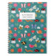 This playful notebook features a colorful teal bug pattern with ladybirds, bees, butterflies, snails, and flowers. Personalize the front label with your name for a fun and cheerful everyday journal.