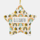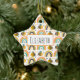 An ornament with a cute patterned background. Whimsical bees and rainbows with little hearts and stars scattered around. Adorable and delightful.