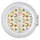 Compact mirror with a cute patterned background. Whimsical bees and rainbows with little hearts and stars scattered around. Adorable and delightful.