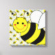 A big yellow and black bumble bee with a bee pattern with some flowers, hearts, swirls, twirls, and bee trails.