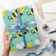 A cute bumble bee seamless pattern. Bring the summer atmosphere everywhere you are. You can change the green/blue turquoise background color to any color you want. Everything is fully customizable!