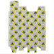 A big yellow and black bumble bee with a bee pattern with some flowers, hearts, swirls, twirls, and bee trails.