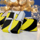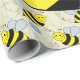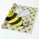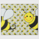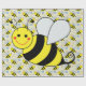 A big yellow and black bumble bee with a bee pattern with some flowers, hearts, swirls, twirls, and bee trails. The big bee illustration can be resized and moved.