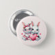 Button with an illustration featuring 2 white furry bunnies sharing a big pink heart. The girl bunny is wearing a cute bow on her head and heart-shaped glasses. The boy bunny is wearing an adorable little suit with a tie.